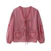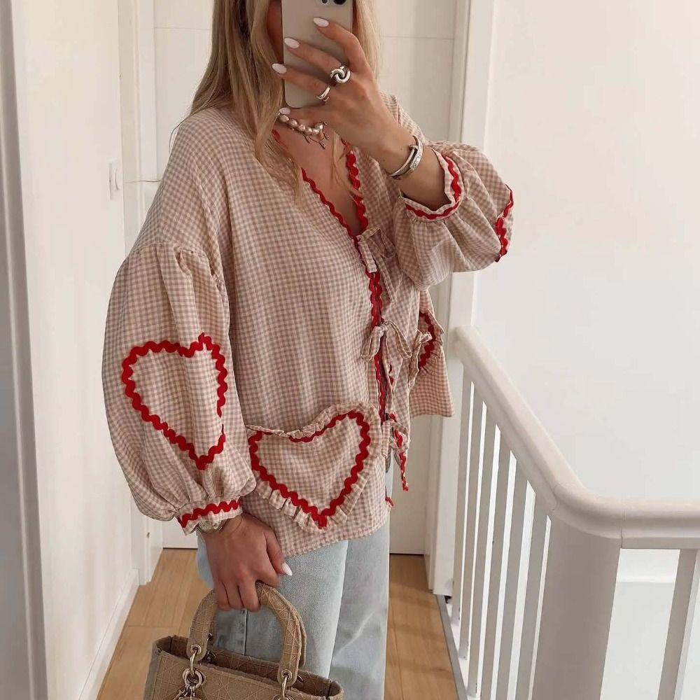 Stripe Plaid Bowknot Lace Up Blouse Ruffle Loose Chic Puff Sleeveless Blouse Tops Party