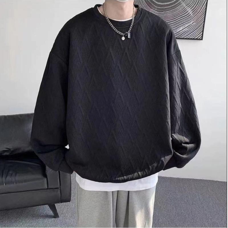 Designová žakárová plus sametová mikina s kulatým výstřihem pro muže podzimní a zimní volná s dlouhým rukávem ležérní spodní tričko