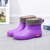 Medium tube rain shoes women's non-slip short tube rubber shoes fleece warm water shoes kitchen waterproof shoes women's lightweight flat rain boots