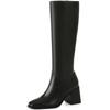 Women'S Fashion Knee High Boots Square Toe Chunky High Heels Motorcycle Combat Long Booties For Women Street Classic Comfort Sho
