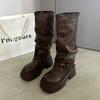 Women's High Boots Flats Platform Knee High Designer Shoes Fashion Winter Chelsea Boots New Dress Goth Long Mujer De Botas