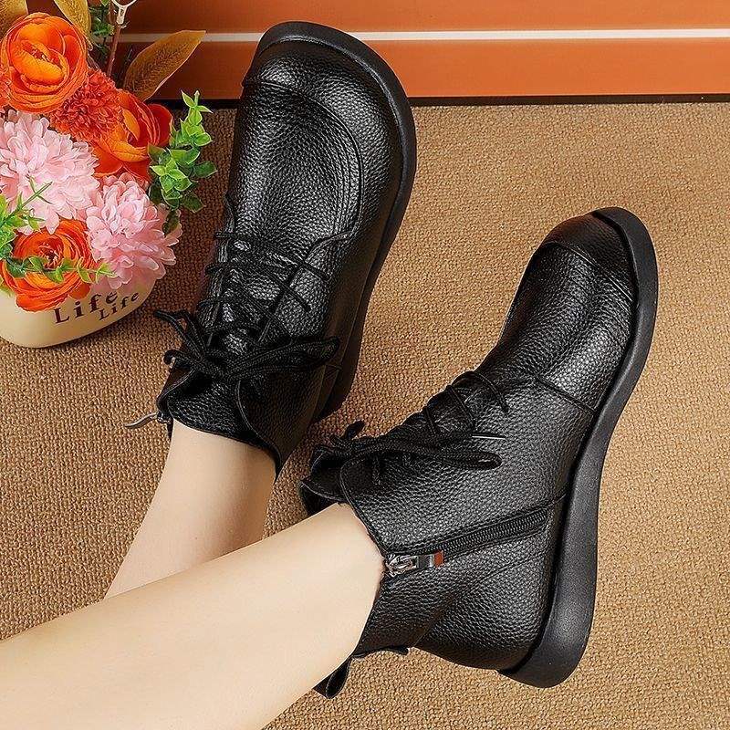 Teplé bavlněné boty pro střední věk a seniory, ležérní kožené boty pro matky, plochá podrážka, protiskluzové, nové sametové martensky, krátké boty 42