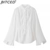 BITCED Fall Women's Solid-Color Slim-Fit Streetwear V-Neck Long-Sleeve Mesh Top