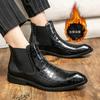 Men's Pointed Toe Chelsea Boots – Vintage Crocodile Pattern, Genuine Leather Slip-On Ankle Boots, Mid-Top British Style.