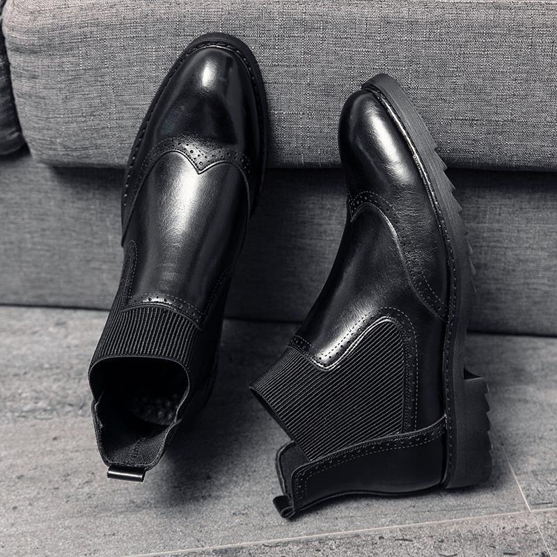Men's High-Top Winter Business Leather Chelsea Boots - Pointed Toe, Korean Style, British Trend