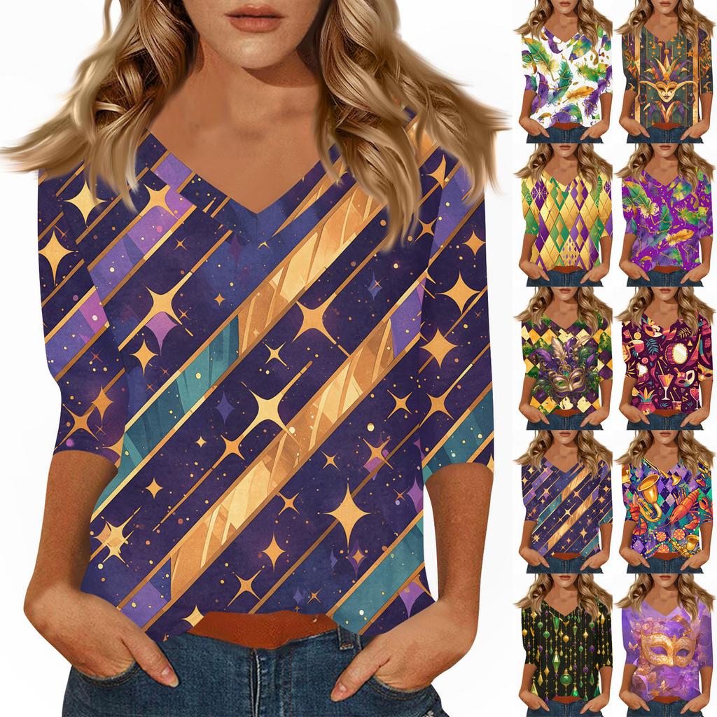 Dámské tričko s potiskem 3/4 rukáv denní víkendová móda základní véčkový výstřih běžný top