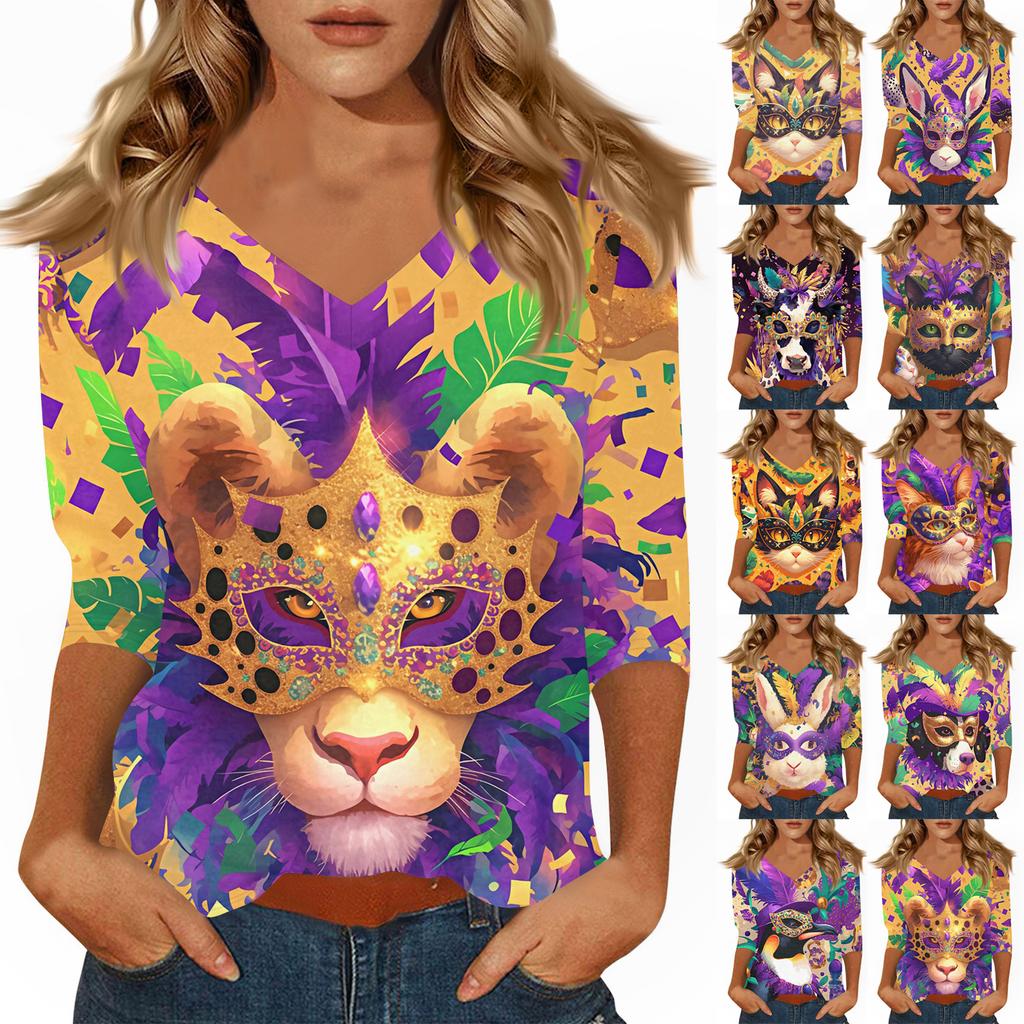 Dámské tričko s potiskem 3/4 rukáv denní víkendová móda základní véčkový výstřih běžný top