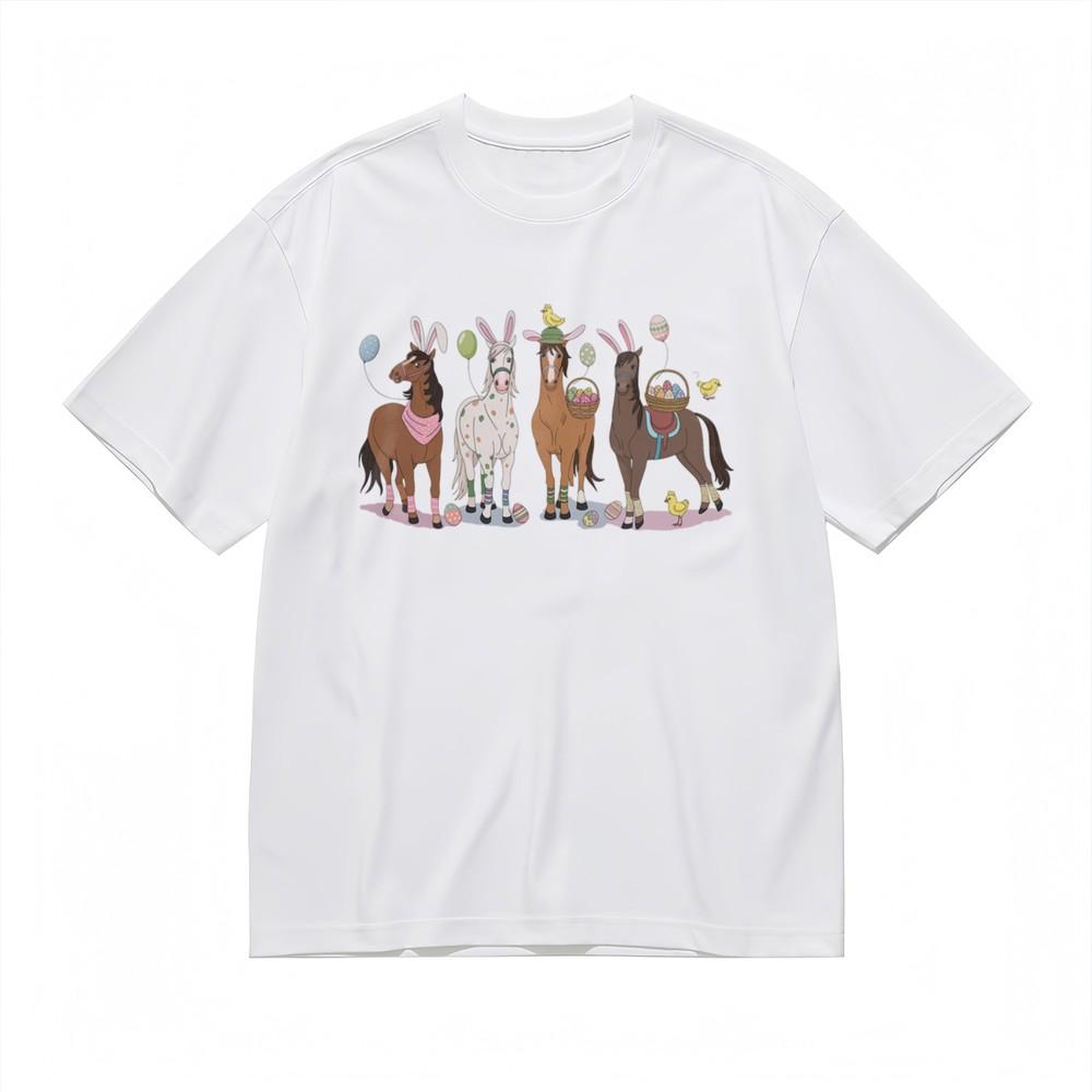 Women's Fashion Classic T-Shirt Multicolor Ribbon Decorated Equine Party Tee
