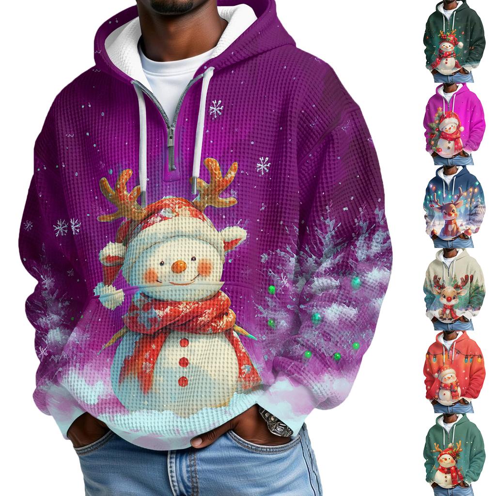 Pánská Móda Trendy Mikina s kapucí na půl zipu Pulovr Zesílená Fleecová Textura Mikina
