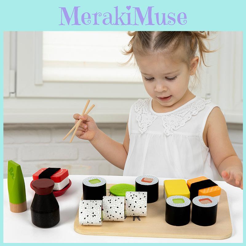 Kitchen Pretend Play Toy Wooden Sushi Cake Children Learning Creative Play Gift