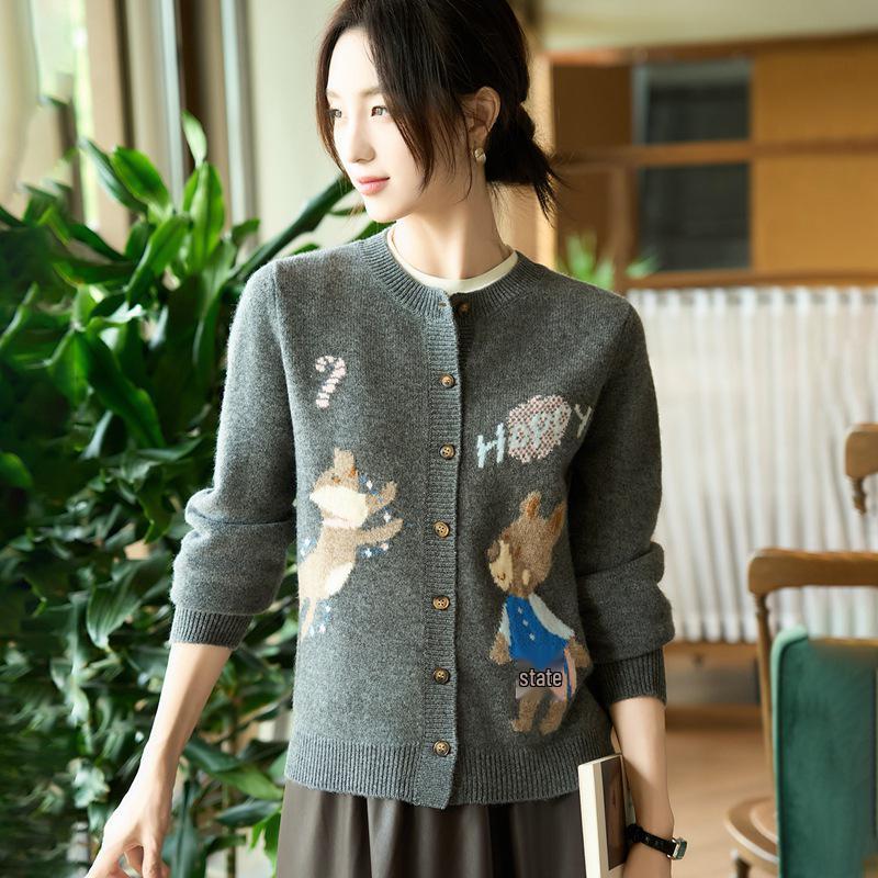 Women's High-End Embroidered Knitted Wool Cardigan, Long Sleeve Loose Fit Sweater Coat for Autumn and Winter