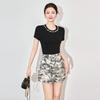 Heavy Industry Beaded Sequin Double Zipper Knit Cardigan - Short Sleeve Tencel