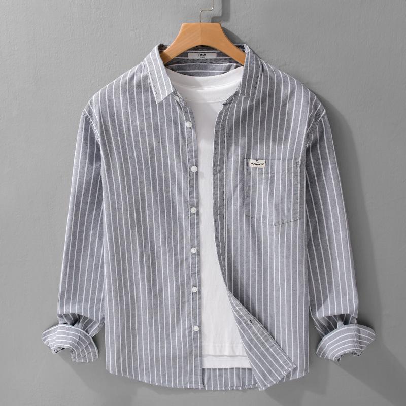 Men's Japanese Striped Cotton Shirt: High-End, Versatile, Long Sleeve for Spring