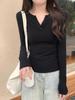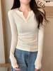 Korean Style Slim Fit Women's Cotton Long Sleeve T-Shirt with Half-Open Collar, Early Autumn Fashion.