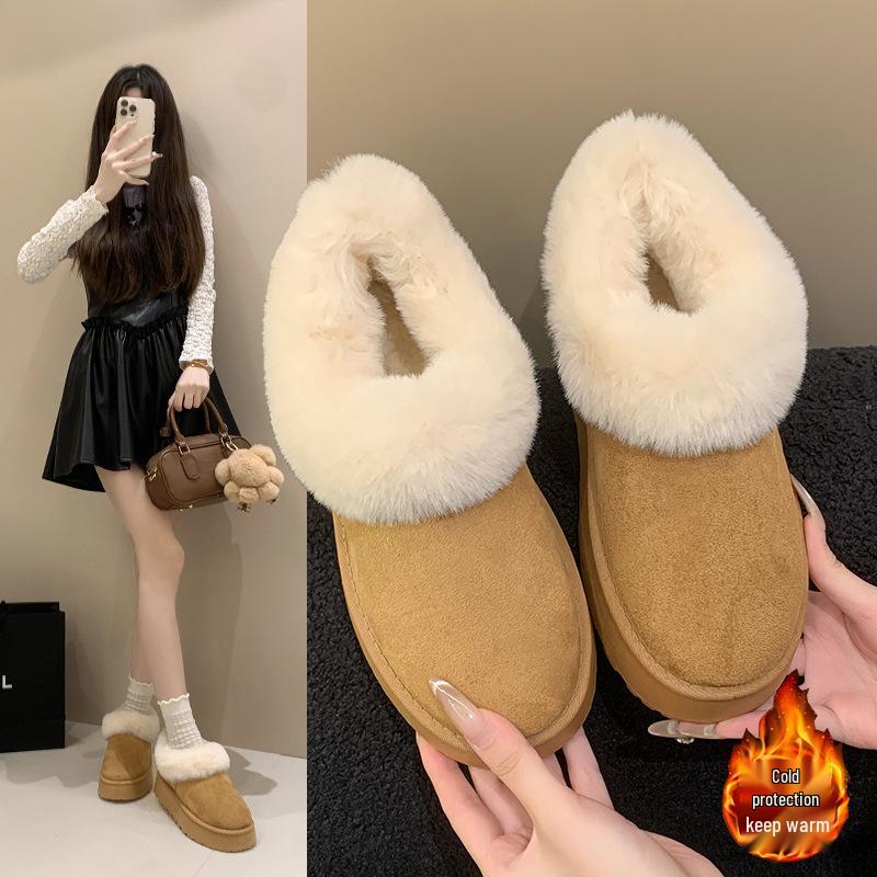 Women's Plus Velvet Indoor-Outdoor Warm Heel Cotton Snow Boots, Sizes 36-43, for Autumn and Winter.