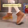 Women's Korean Style Thick Sole Hidden Heel Snow Boots: Genuine Leather, Fleece-Lined, Warm Ankle Boot for Versatile Winter Wear.