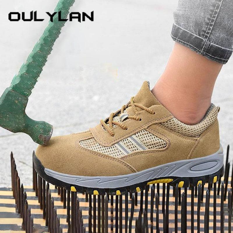 Oulylan Lightweight Breathable Industrial Safety Shoes Wear Resistant Steel Toe Work Boots Men Anti-smash Protection Footwear