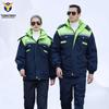 Introducing a durable and warm workwear suit designed for demanding outdoor environments such as gas stations, toll stations, and shipyards. This insulated suit features a coat crafted with a cotton blend material, ensuring both comfort and resistance to wear and tear. The fur lining, made from a cotton blended material, provides additional warmth, making it ideal for cold weather conditions. Suitable for professionals who require reliable protection without compromising on comfort and mobility.