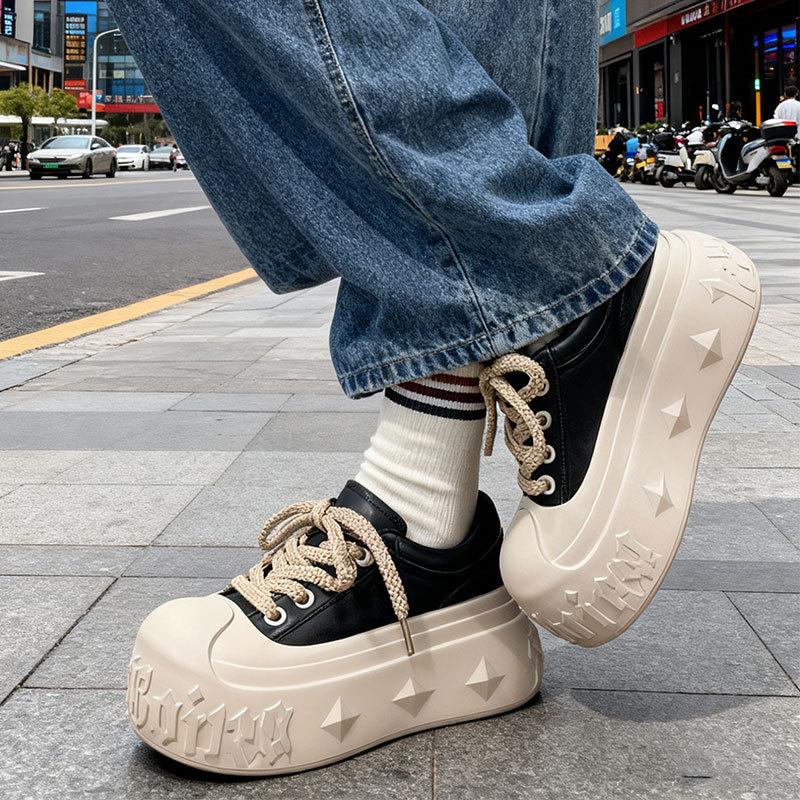 Muffin platformové bílé boty dámské podzim 2025 nové populární malé pánské zvýšení výšky všestranné ležérní boty s velkou hlavou chlebové boty