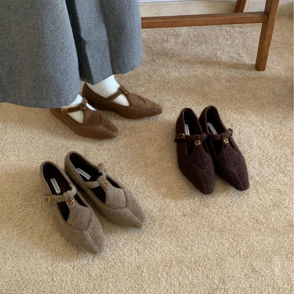 2025 autumn and winter new pointed one-word with fluffy plush inner increase commuting soft-soled women's and women's single shoes