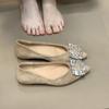 French beautiful rhinestone buckle pointed head shallow mouth single shoes 2025 new temperament versatile thick heel commuter ladyshoes
