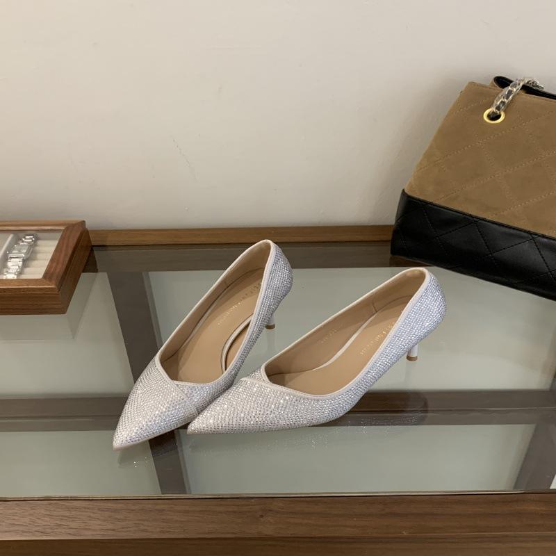 Rhinestone single shoes one-pedal temperament commuter shoes low-heeled shoes spring and summer new French evening wind women's shoes light-mouth shoe