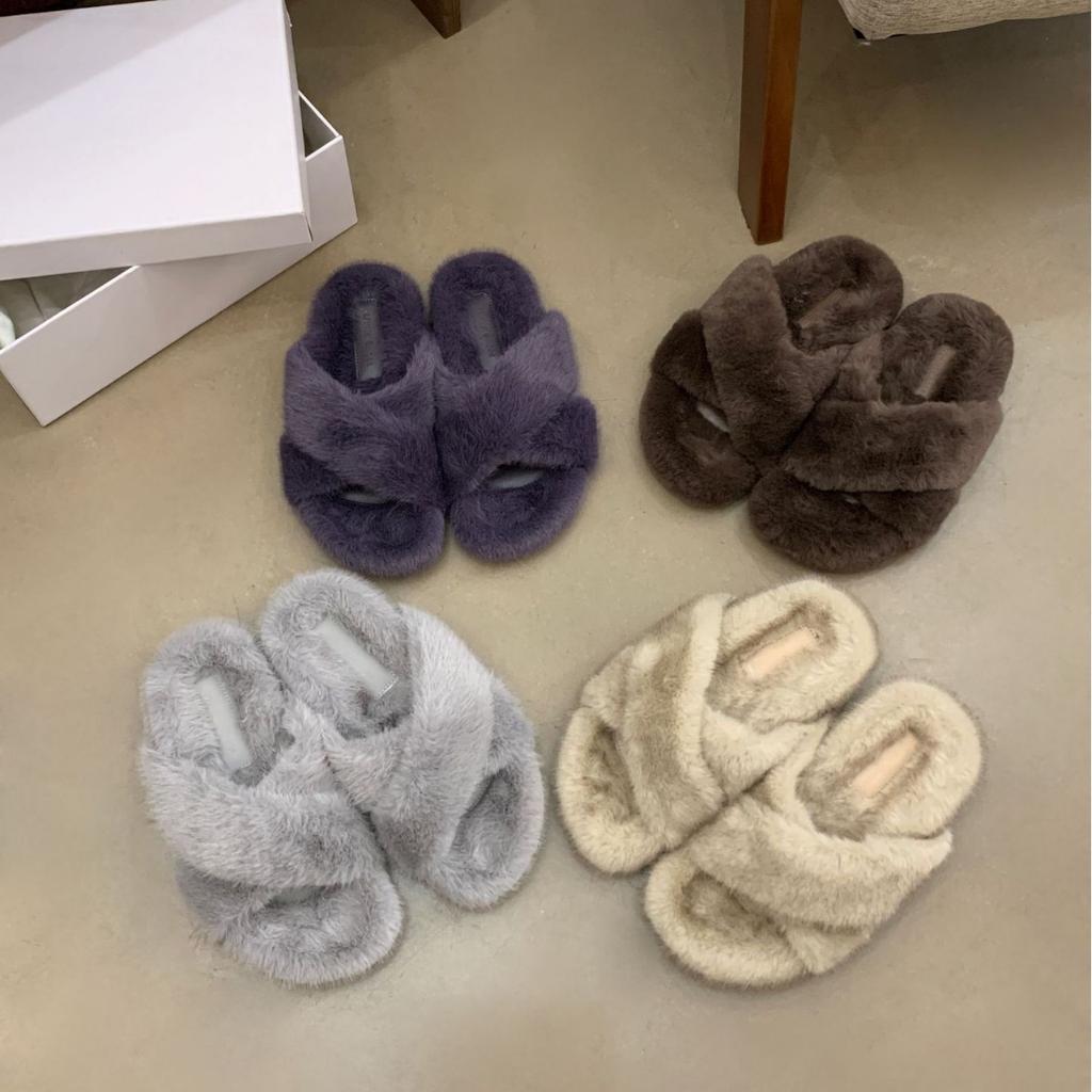 M68-8~ Platform-soled French cross-strapped open-toed fluffy slippers for women's shoes, new for autumn and winter 2025