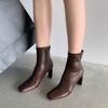 High-heeled short boots women's 2025 new Korean version square head thick heel small thin boots autumn and winter French retro boots