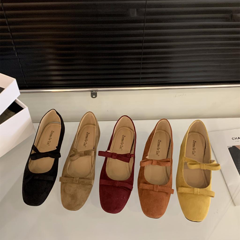 Jonmei for San Nei heightening retro suede ballet single shoes women's shoes 2025 autumn bow evening shoes