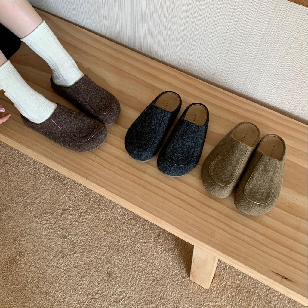 2025 new autumn round head casual woolen material half drag thick sole outer wear casual women's shoes