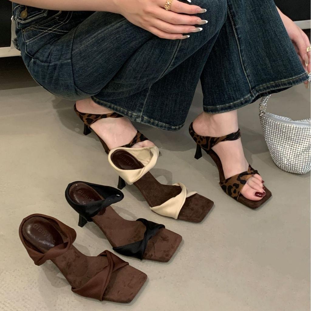 New sexy high-heeled sandals for women's summer wear square head open-toed sandals with stiletto sandals