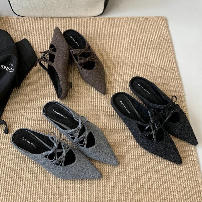 2025 new pointed toe bag head half slippers women's fashion versatile one-pedal lazy shoes flat muller shoes