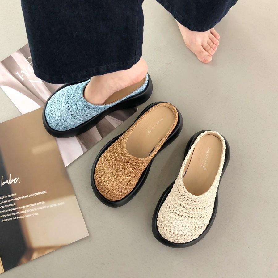 Spring and summer 2025 new thick-soled inner height increase bag head weaving one pedal outer wear slippers casual versatile women's slippers