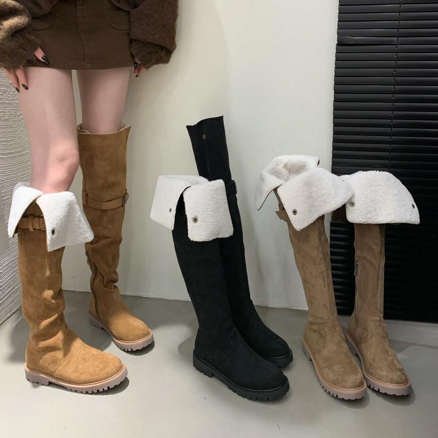 Retro rivet slim knee boots women's 2025 new winter thick heel suede two wear tall western knight boots