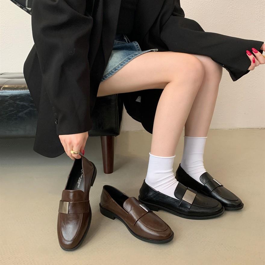 British style small leather shoes women's autumn 2025 new square head retro loafers flat-bottomed versatile women's single shoes