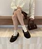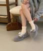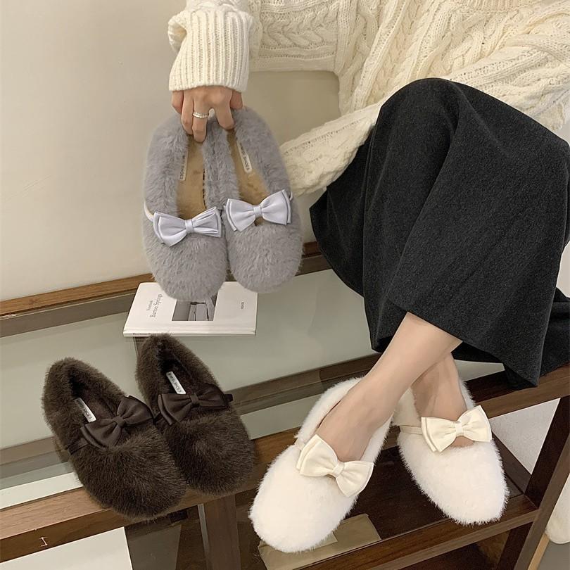 2025 autumn and winter new double bow fluffy shoes velvet cotton shoes wear flat shoes one pedal
