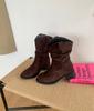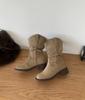 2025 autumn and winter new Maillard retro temperament thin suede western pile female knight boots