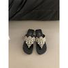 2025 spring and autumn new pearl rhinestones wave wind toe sandals women's flat bottom outside fairy style French