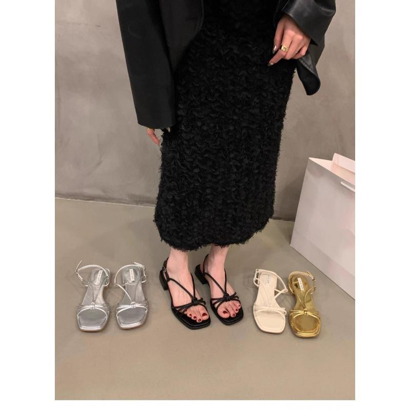 2025 spring and autumn new niche French flat-bottomed thin-strapped sandals fairy shoes square head open-toed versatile Roman cool