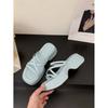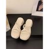 Muffin thick-soled one-word slippers women's shoes outer wear 2025 new summer niche leopard print sandals heightened square head sandals