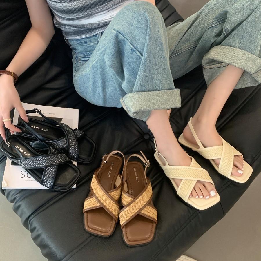 2025 new summer flat sandals outer wear women's shoes soft sole comfortable versatile beach retro Roman shoes