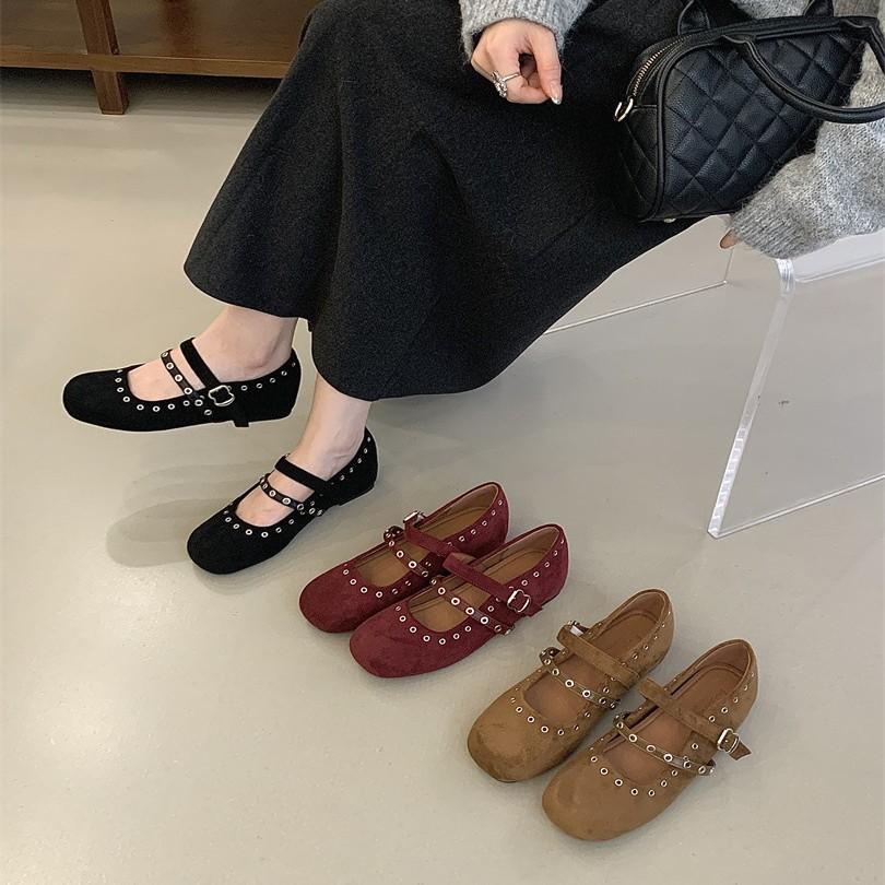 Gentle fairy wind ballet single shoes female 2025 French temperament elegant rivet round head shallow mouth Mary Jane shoes