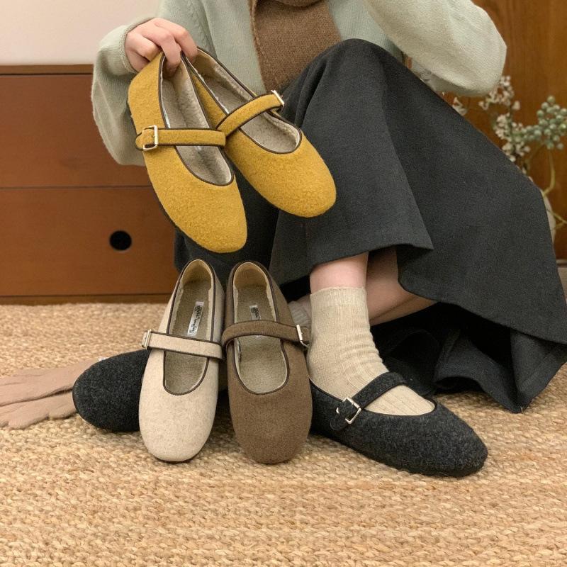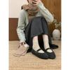 Happyfeeling retro velvet one-word with fluffy shoes women's 2025 Mary Jane single shoes warm cotton shoes