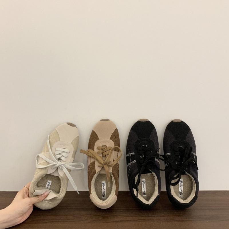 Korean version of velvet warm casual moral training shoes women's winter 2025 new color matching lace-up flat-bottomed versatile Mao Mao single shoes