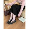Retro flat-bottomed woven bag head slippers women's 2025 new spring large-size square head French Mary Jane heel-less single shoes