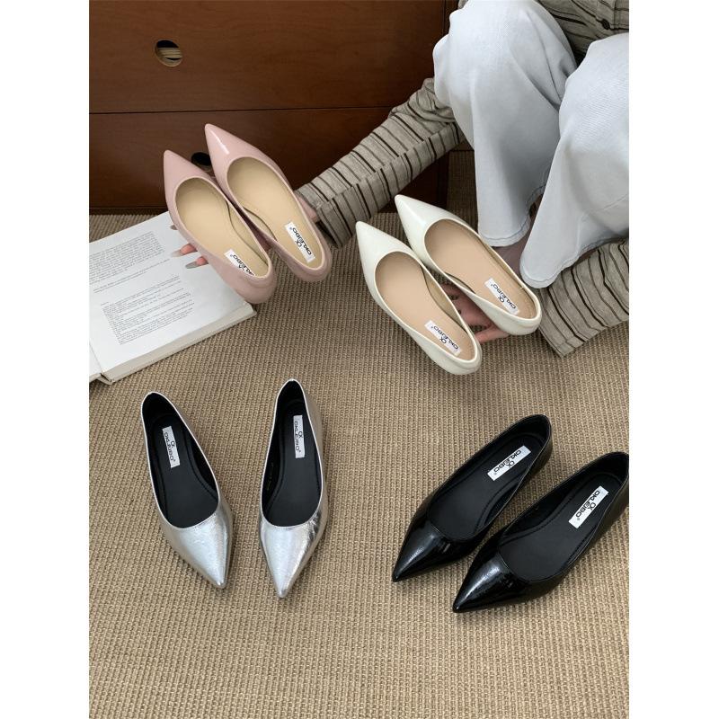 Shallow mouth height increase 3cm pure desire single shoes slightly exposed toe seam pointed flat shoes versatile commuter women's single shoes