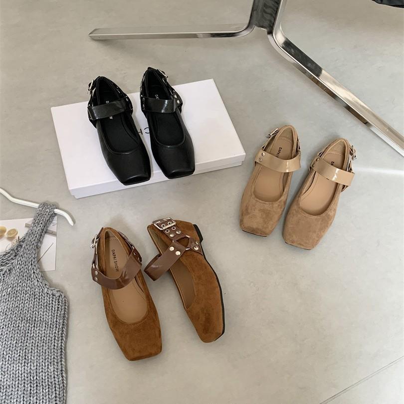 Square head retro one-pedal ballet shoes women's flat-soled single shoes 2025 new outer wear foreign trade shoes