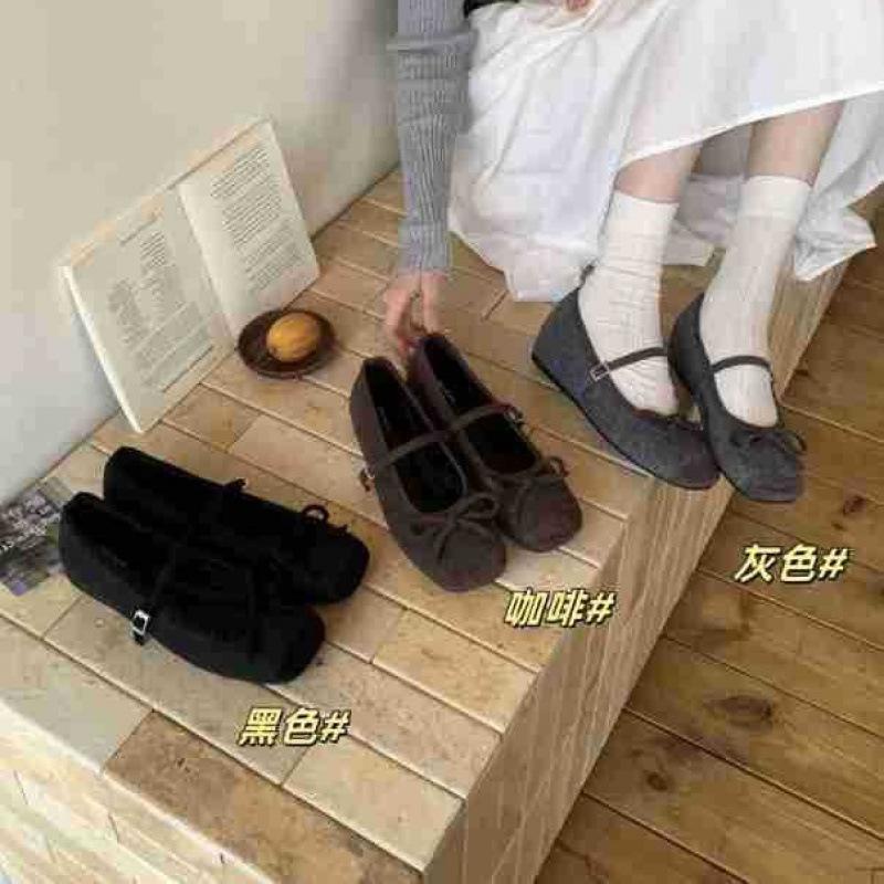 2025 new inner height-increasing single shoes versatile bow evening shoes shallow mouth ballet Mary Jane shoes woolen single shoes