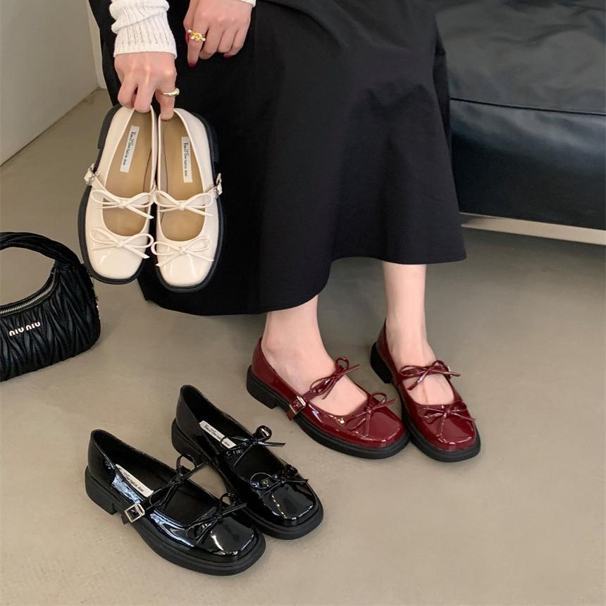 Fashion cute retro bow round head platform small leather shoes women's 2025 new spring and summer with skirt Mary Jane shoes