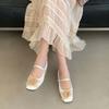 2025 early autumn new Korean version temperament camellia model one-word with square head soft sole inner height increase single shoe